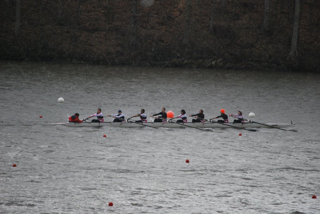 In rowing, “catching a crab” refers to the blade of your oar hitting the water at the wrong angle and getting sucked under. It can be scary—it feels as if a giant being underwater has grabbed your oar and pulled it down, and it happens in the blink of an eye. Often the grip (the part of the oar you hold) will come flying back at you as the oar swings around parallel with the boat itself, so you have to duck backward to avoid getting hit in the head. Sometimes, you even get ejected from the boat, such is the force of striking the water wrong when the boat has momentum! Here is a great video of what catching a crab looks like. It’ll be obvious when it happens, but keep an eye on the four-seat (the rower fourth from left). (This rower makes a truly impressive recovery!)