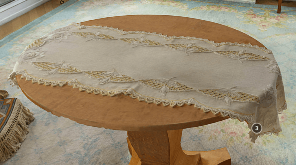 Captain Amundsen is stopping at the Waldorf. Last night when he entered his room there he found a small package and when he looked at its contents his voice broke with emotion. It was an embroidered linen table cover, about 4 feet long and 15 inches wide.